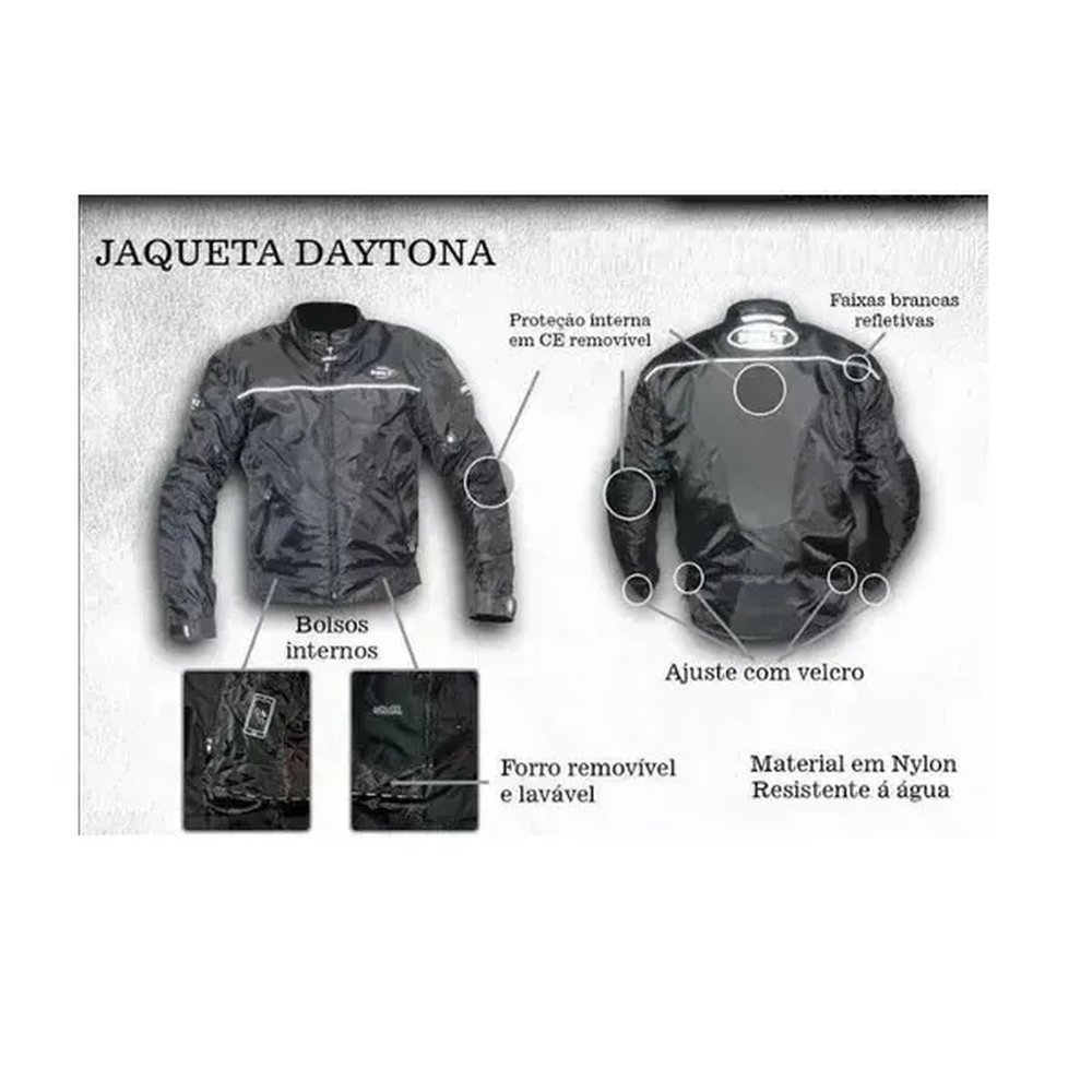 Clique no botão “Comprar agora” para garantir Jaqueta Masculina Helt Daytona Nylon Resistente À Água C/ Proteções – Preta pelo melhor preço!