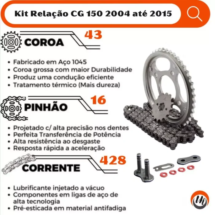 Um kit de relação de motocicleta é um conjunto de peças que incluem corrente, coroa e pinhão. Essas peças são essenciais para transmitir a potência do motor para a roda traseira da motocicleta. A corrente é responsável por transferir o torque do motor para a roda traseira, enquanto a coroa e o pinhão ajudam a alterar a relação de transmissão para melhorar o desempenho ou a eficiência da moto.